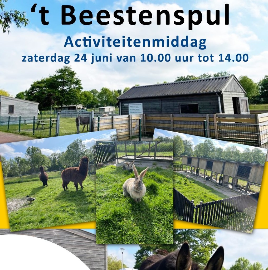 Bij het kinderboerderijtje het Beestenspul is een prachtige gemeenschappelijke ontmoetingsplaats voor jong en oud. Daar nodigen we iedereen uit om een bekertje limonade te komen drinken en mee te doen aan diverse activiteiten. Na de opening om 10:00 uur mogen de aanwezigen exclusief en eenmalig de diertjes voeren samen met de verzorgers. De activiteiten duren dan tot 14:00 uur.