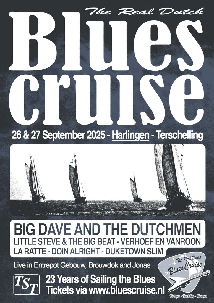 De line-up van 2025 is er één om je vingers bij af te likken. Zo komt Big Dave & the Dutchmen, volgens kenners “de beste bluesband van de Lage Landen”, exclusief naar Harlingen. De Vlaamse frontman Big Dave (zang, mondharmonica) is letterlijk en figuurlijk een grote meneer in de blues. Sinds The Electric Kings in de jaren ’90 heeft hij de lat op een internationaal niveau gelegd. In zijn huidige band wordt de Belg bijgestaan door absolute topmuzikanten uit de Nederlandse rootsmuziek. Mischa Den Haring hoort al jarenlang bij de beste bluesgitaristen van Nederland. Ook toetsenist Roel Spanjers heeft een flinke staat van dienst. De ritmesectie bestaat uit de roemruchte gebroeders Dusty en Darryl Ciggaar op bas en drums. Een bezetting om van te dromen! Ook Little Steve & the Big Beat en het rauwe powertrio La Ratte zijn van de partij. Samen brengen zij een mix van pure blues, swamp en rootsrock.
