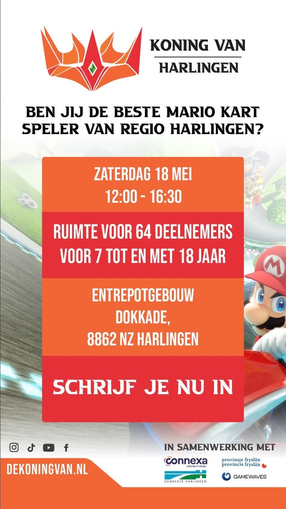 Op 18 mei organiseert Stichting Maatschappelijk Gamen het gametoernooi Koning van Harlingen. 64 jongeren van 7 t/m 18 jaar oud nemen het tegen elkaar op in het Entrepotgebouw. De winnaar krijgt een leuk prijsje en kwalificeert zich voor de grote finale en de kans om Koning van Fryslân te worden.