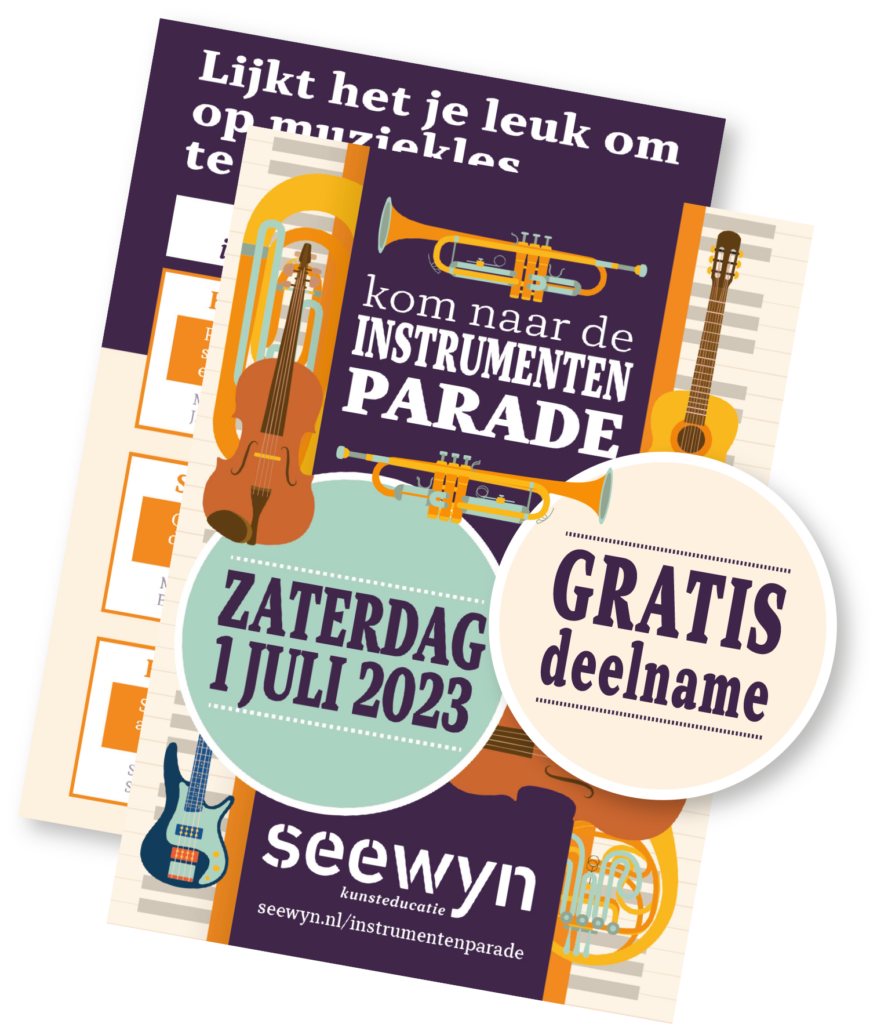 Heb je altijd al willen leren hoe je een instrument bespeelt? Dan is dit jouw kans! Op zaterdag 1 juli vindt de Instrumentenparade plaats op verschillende leslocaties van Seewyn Kunsteducatie en kun je een breed scala aan muziekinstrumenten uitproberen.