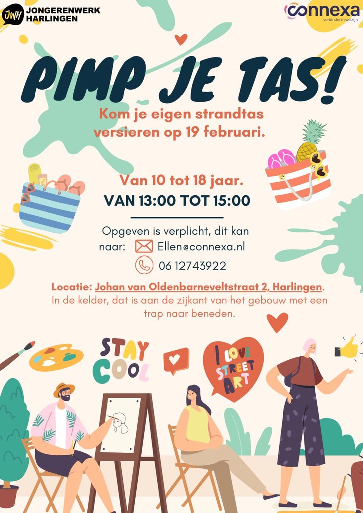 Op woensdag 19 februari kunnen jongeren hun eigen tas ontwerpen en versieren met verf, stiften en andere materialen.