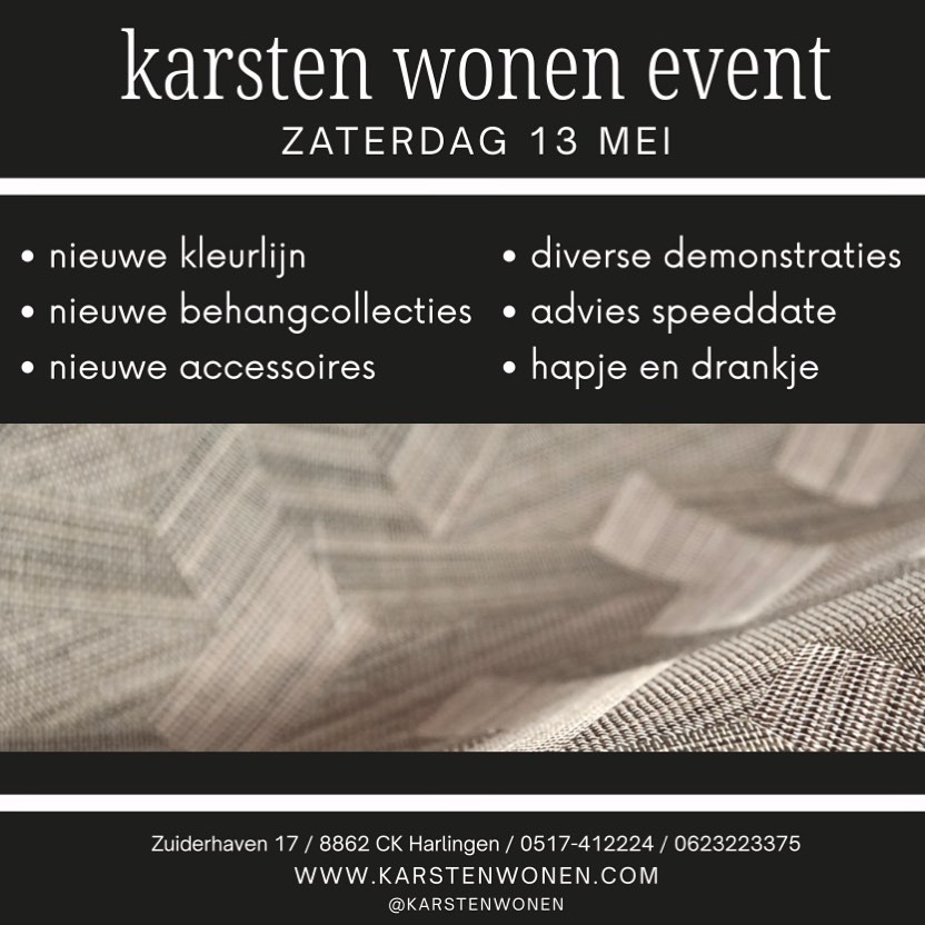 Op zoek naar woonideeën voor je interieur of tuin? Kom naar het Karsten Wonen Event! Hier doe je de leukste interieur ideeën en wooninspiratie op!