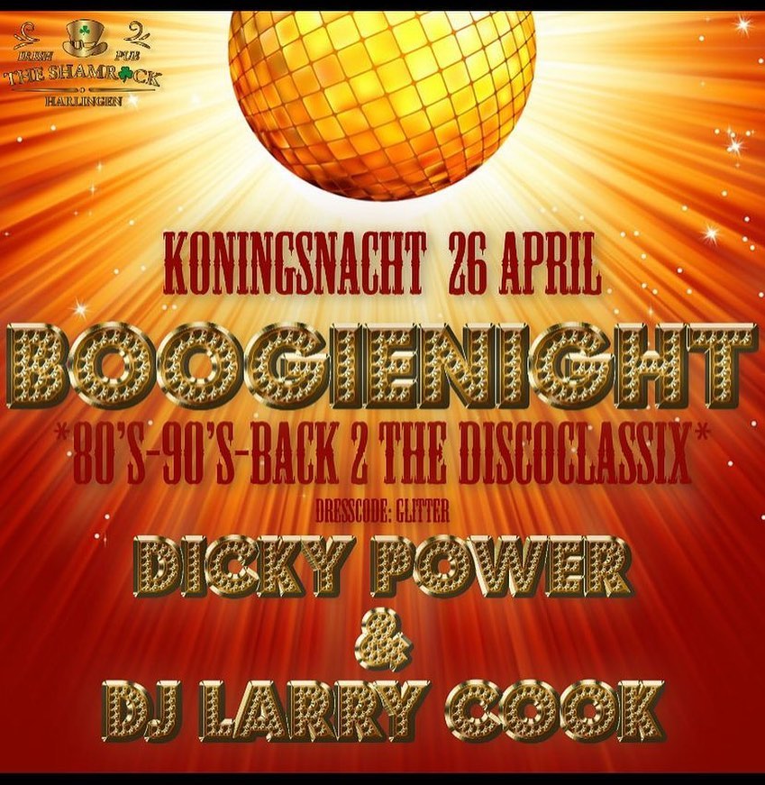 HARLINGEN - Koningsnacht 26 april is het party time met een heuse 'Boogie Night' bij The Shamrock!