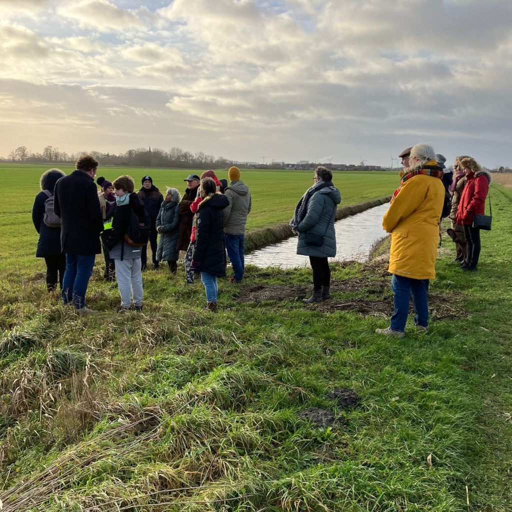 Genietend van fluitenkruid, klaver en boterbloem wandelen we via het deels onverharde pad langs de Ried. Daar treffen we bergeenden, fuut en wilde eend en zelfs misschien wel een paar reeën. Onderweg staan we meerdere malen stil en vertellen dan over het ontstaan van de terpenrij, ten oosten van het dorp. Tijdens deze kuier (6 km) wordt onderweg een pauze ingelast voor een versnapering.
