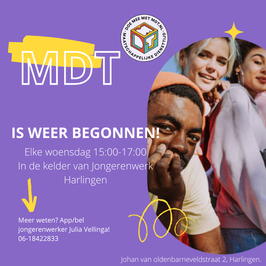 Doe je mee met MDT, dan doe je een MDT-traject bij jou in de buurt. De meeste MDT-trajecten duren minimaal 80 uur en maximaal 6 maanden en zijn voor jongeren tussen de 12 en 30 jaar. Er zijn ook trajecten die korter duren. Je kiest zelf waarvoor je je wil inzetten. Je organiseert bijvoorbeeld een evenement voor kinderen in jouw wijk, helpt nieuwkomers met de Nederlandse taal of wordt het maatje van eenzame ouderen. Alles is mogelijk! Je doet jouw MDT in bijvoorbeeld je tussenjaar, tijdens school of in je vakantie.
