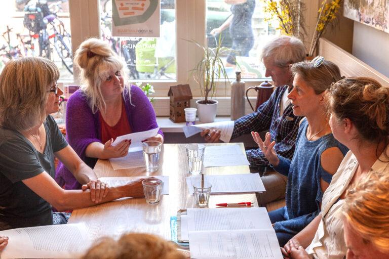 Samen worden er teksten, gedichten, fragmenten, hardop (voor)gelezen in het Nederlands maar kan (in overleg) ook in het Fries zijn. Wie wil kan reageren op de teksten. Wat zeggen woorden? Wat doen ze met je? Haalt de tekst herinneringen, associaties, gedachten naar boven? Dit zorgt voor mooie gesprekken.