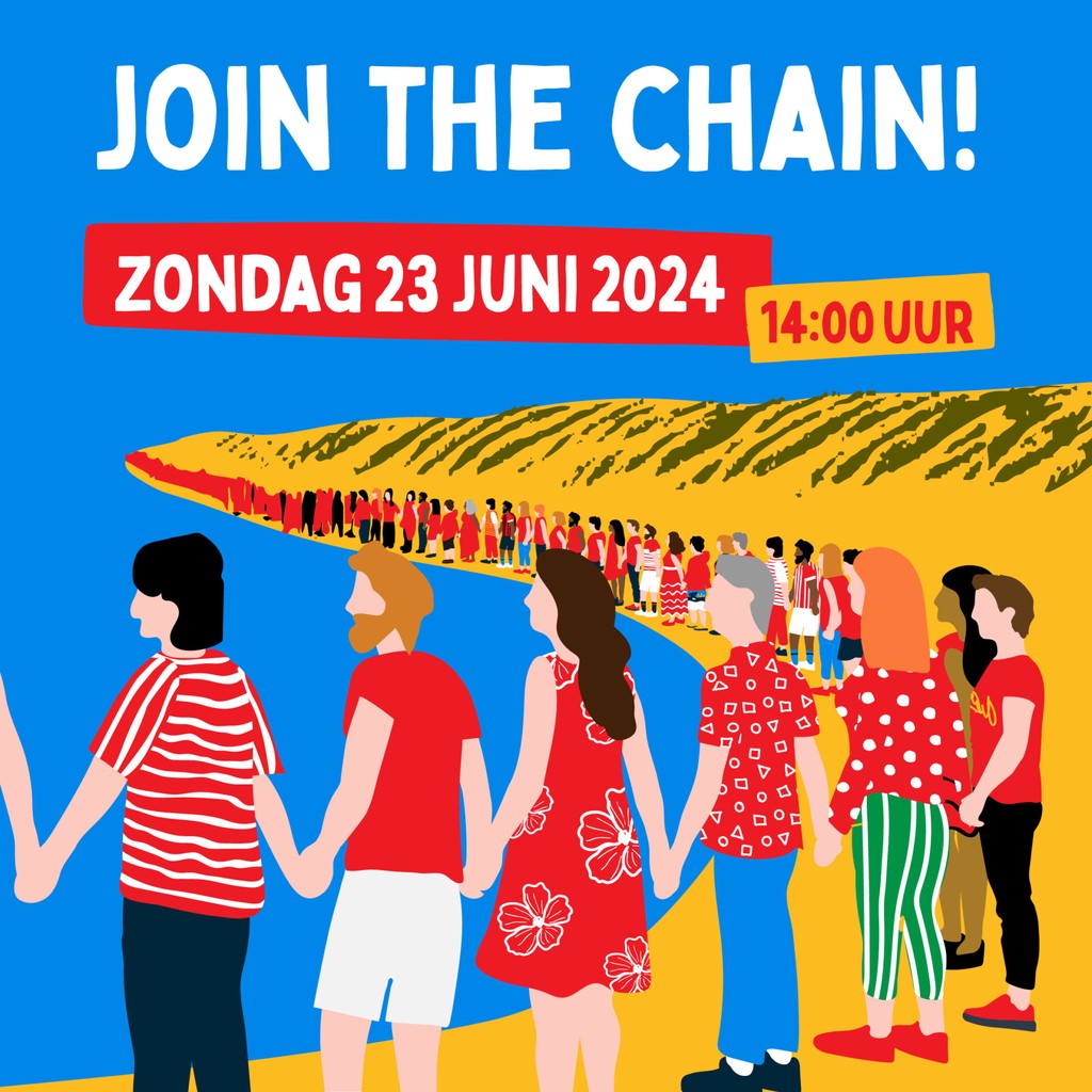 We slaan de handen ineen en trekken een rode streep langs bijna 200 kilometer Nederlandse kustlijn. Samen vormen we een human chain en vragen we snellere actie tegen ontwrichtende klimaatverandering en voor een volhoudbare economie. Zo maken we het grote draagvlak voor meer en snellere klimaatactie zichtbaar.