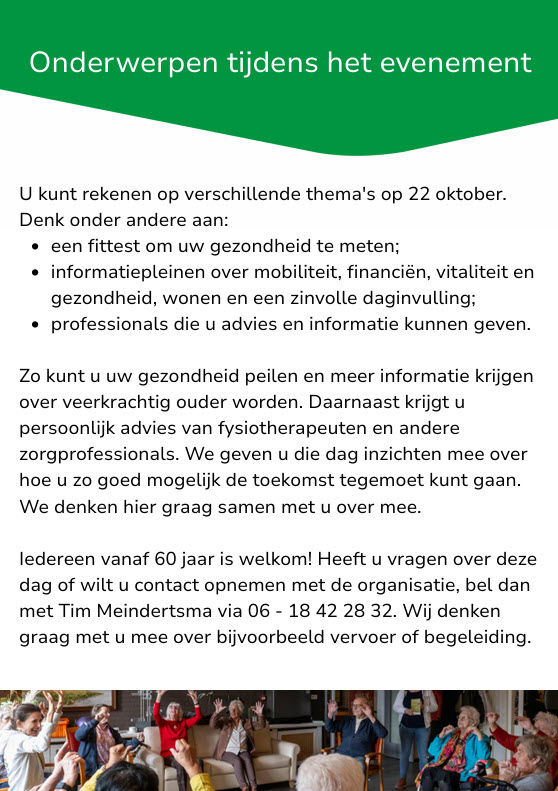 De toegang is gratis, dus kom gerust langs, laat je inspireren en ontdek hoe je met kleine stappen groot verschil kunt maken in je dagelijks leven.