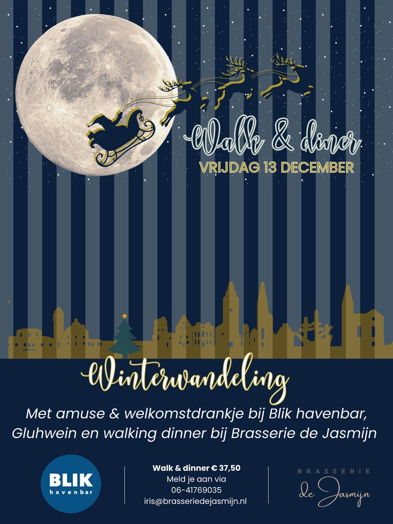 Blik havenbar en Brasserie de Jasmijn organiseren een gezellige winteravond met kerstsfeer.