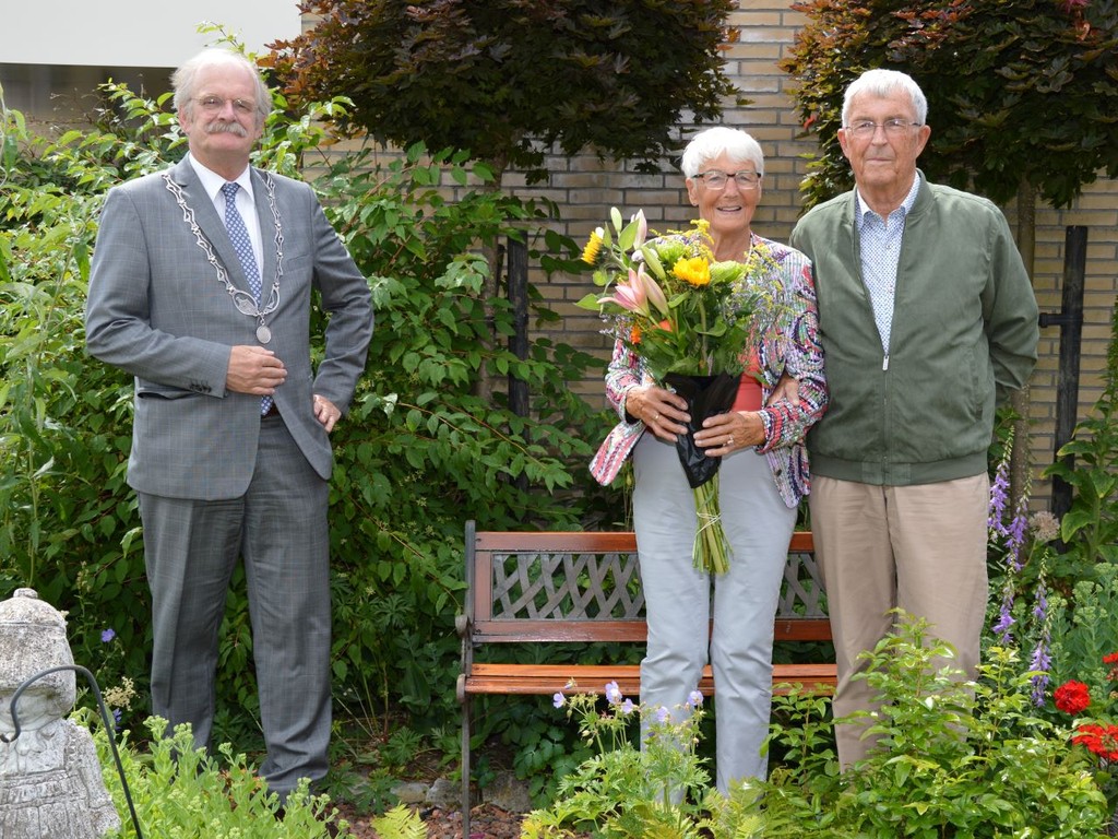 Burgemeester Roel Sluiter heeft het echtpaar namens het gemeentebestuur gefeliciteerd met hun 60-jarig jubileum. Foto: Ubbo Posthuma