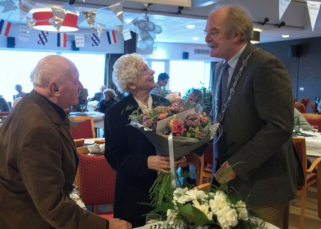 Burgemeester Sluiter feliciteerde het echtpaar zaterdagmiddag namens het gemeentebestuur van Harlingen. Foto: Joachim de Ruijter