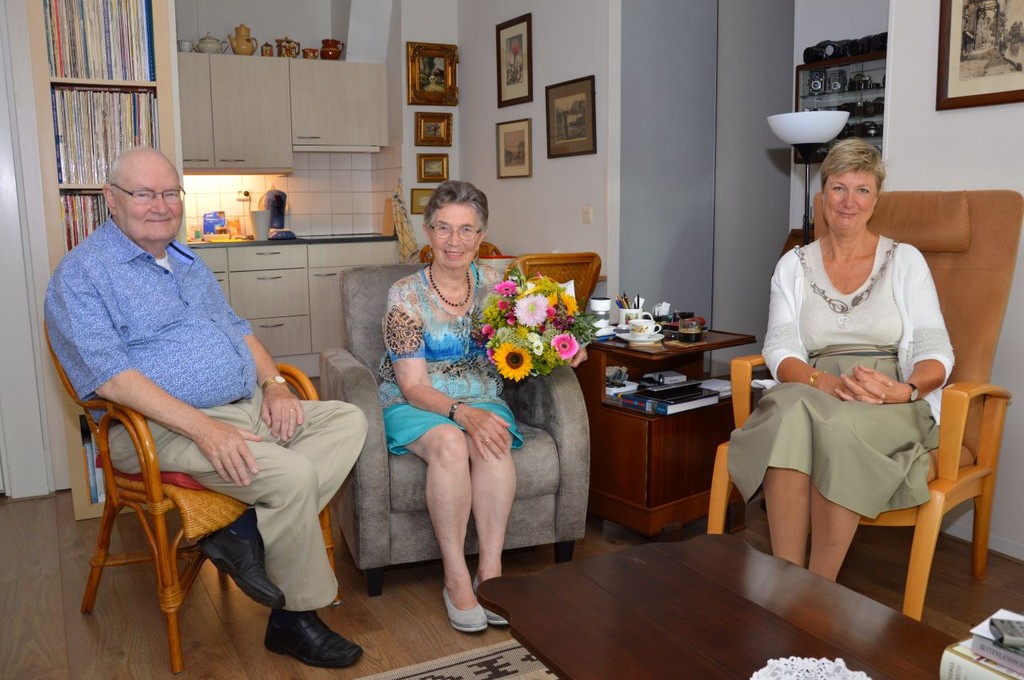 Burgemeester Ina Sjerps heeft het echtpaar maandag 23 augustus om 10.00 uur gefeliciteerd met inachtneming van de richtlijnen van het RIVM.