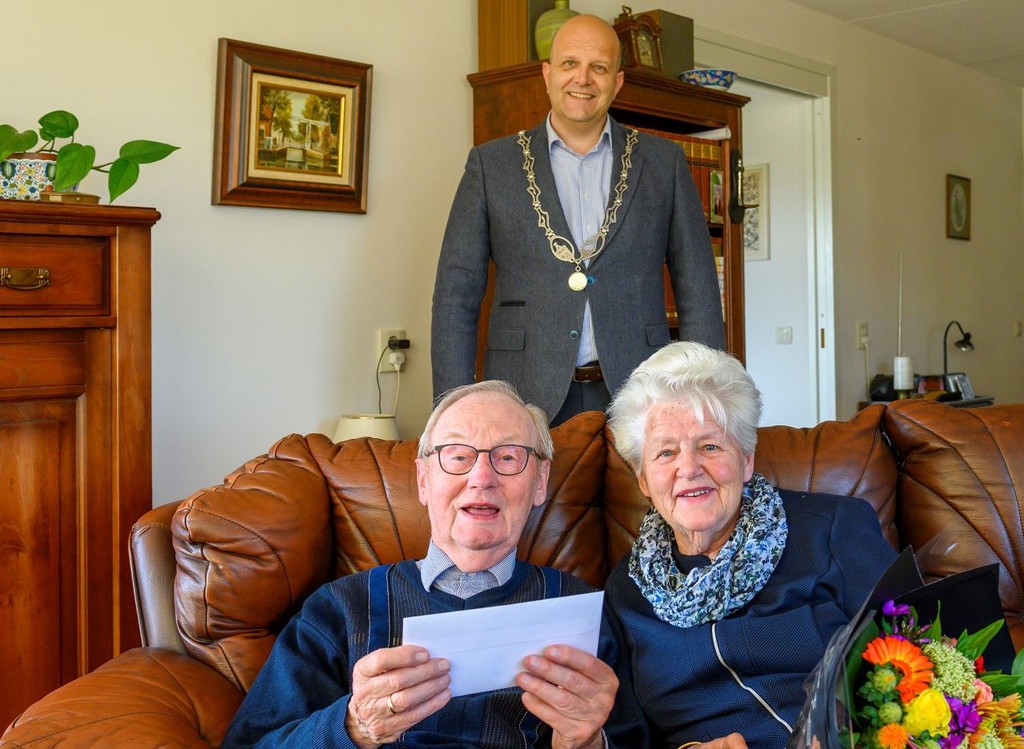 Loco-burgemeester Erik de Groot heeft het echtpaar met inachtneming van de richtlijnen van het RIVM gefeliciteerd.