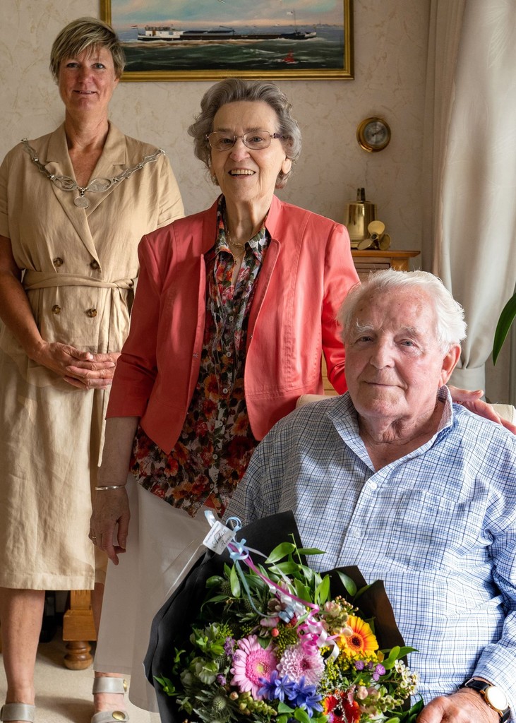 Burgemeester Ina Sjerps heeft het echtpaar een bezoek gebracht op zaterdag 14 augustus 2021 in Harlinga en het echtpaar van harte gefeliciteerd. Foto: Joachim de Ruijter.