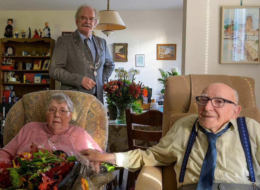 Burgemeester Roel Sluiter heeft het echtpaar gefeliciteerd namens het gemeentebestuur van Harlingen.