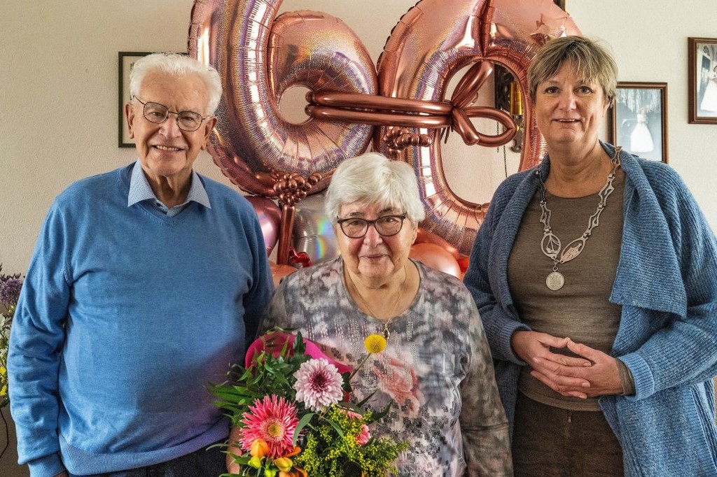 Nu, zestig jaar later, vieren ze hun liefde – een prachtige mijlpaal! Burgemeester Sjerps kwam langs met bloemen om deze bijzondere dag met hen te vieren.
