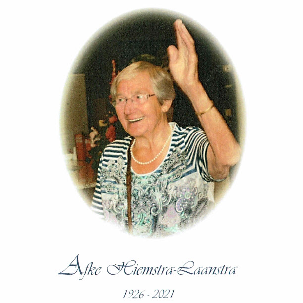 HARLINGEN - Op zaterdag 4 september 2021 is Afke Hiemstra-Laanstra op 95-jarige leeftijd overleden.