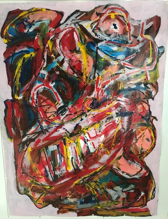 Theo de Graaff werkt intuïtief, zijn gemoedstoestand en de emotie van dat moment zijn leidend, en kleurrijk. Vooral primaire kleuren. Hij noemt zijn werk geen kunst maar handarbeid, dat past hem beter.