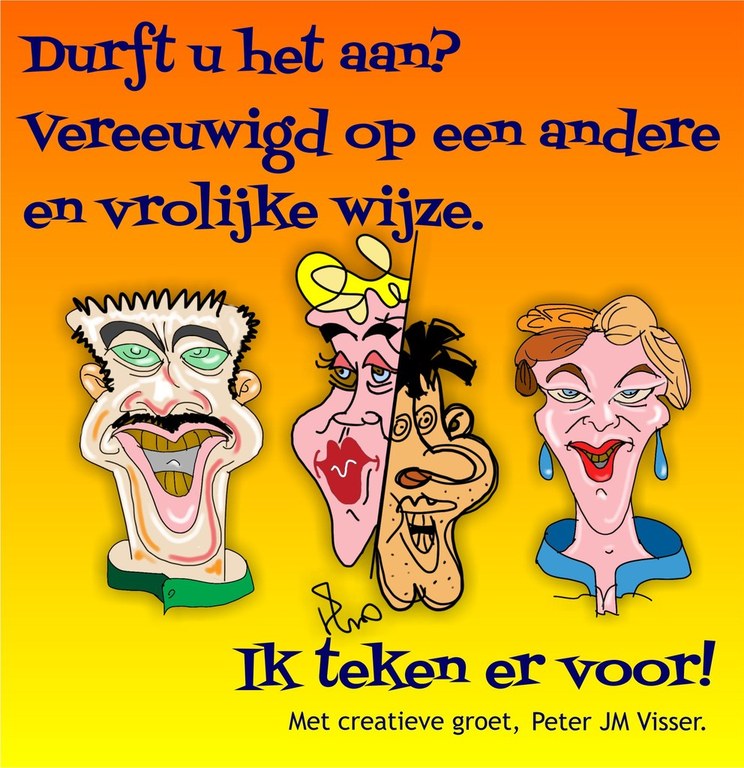 Karikatuur tekenen, schilderen en fotografie.
