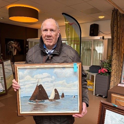 Zijn keuze viel op een schilderij met skûtsjesilen. ‘Mijn grootouders waren schippers, vandaar de link.’ Waar het schilderij komt te hangen, moet hij nog even met zijn vrouw bespreken – waarschijnlijk in de woonkamer, boven de televisie.