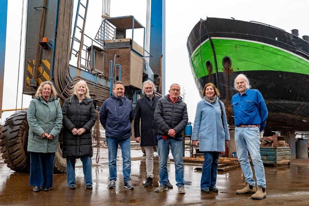 Tijdens het bezoek kregen Edwin Helvrich, Jacqueline Huizenga, Greet Stoker, Ingrid de Mari, Sjoerd Helfrich en wethouder Roel de Jong een inkijkje in het dagelijkse werk op de werf.