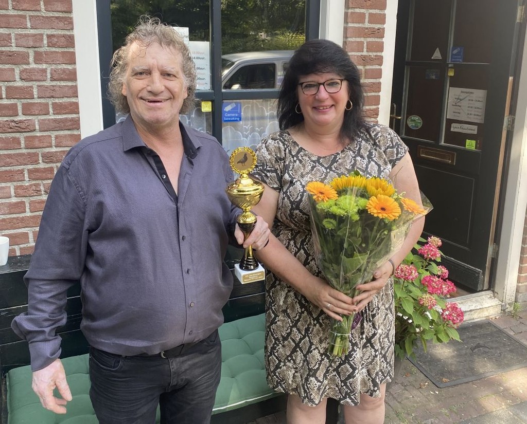 Vorig jaar ging de vitesse-titel naar Rijschool Vamos. Dit jaar mochten uitbaters Maaike en Klaas van Café Tuinzicht aan de Nieuwstraat de beker en bloemen in ontvangst nemen als trotse winnaars van de vitesse competitie 2025.
