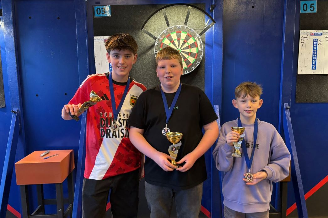 Winnaars jeugd darttoernooi: 1. Lucas Vlieger. 2. Fedde van Dijk. 3. Vince Jilderts.