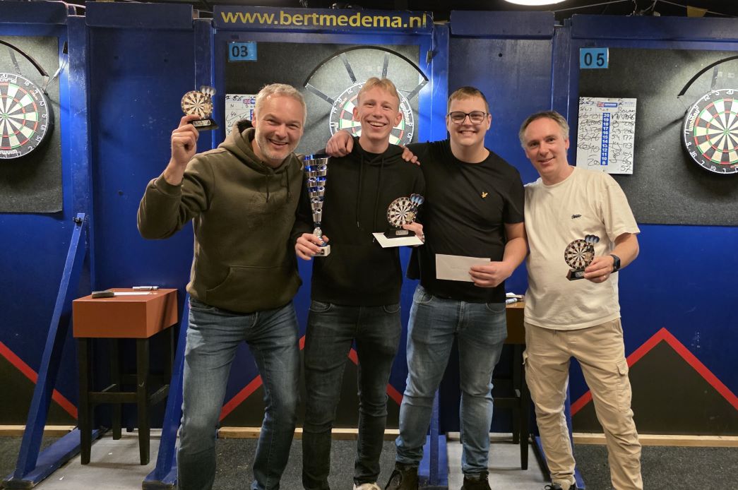 Winnaars senioren darttoernooi: 1. Nick Teerling. 2. Michel Beuker. 3. Rob den Breejen. Hoogste finish: Egbert Jan Panbakker.