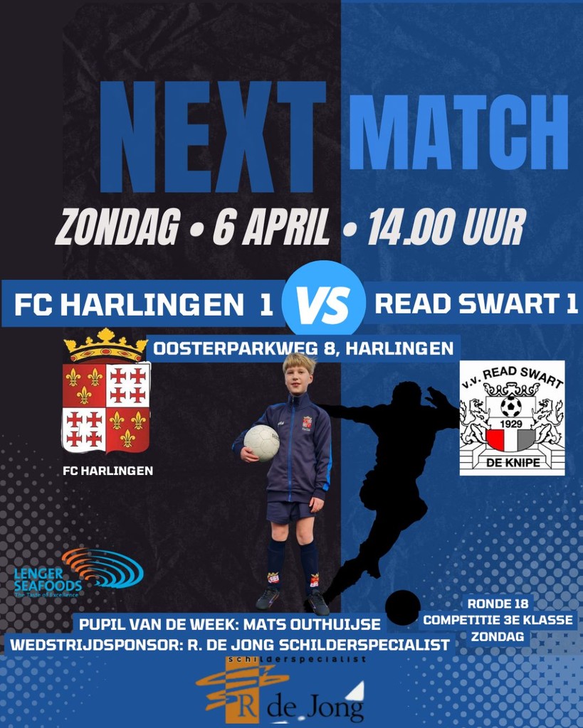 Fc Harlingen speelde de laatste thuiswedstrijd tegen Olyphia en behaalde een verdienstelijk punt tegen de (toen nog) koploper. De Harlingers werden afgelopen zondag in hun vrije weekend ingehaald door concurrent Smilde dat Warga ruim versloeg. We gaan dus een spannende eindstrijd in om lijfsbehoud en dus zullen de Harlingers de punten in eigen huis willen houden. De aftrap op sportpark Vierkantsdijk is op het vertrouwde tijdstip van 14.00 uur en wordt verricht door Pupil van de Week Mats Outhuijse. Wedstrijdsponsor is Riekele de Jong Schilderspecialist.
