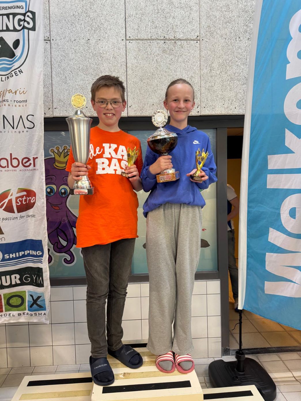 Ook individueel werd er hard gestreden om de podiumplekken. Bij de jongens ging de eerste plaats naar Wisse Broersma van De Kabas. Zijn schoolgenoot Thomas de Grave eindigde als tweede en Jelte Onnes van ‘t bAken zwom naar een mooie derde plaats.