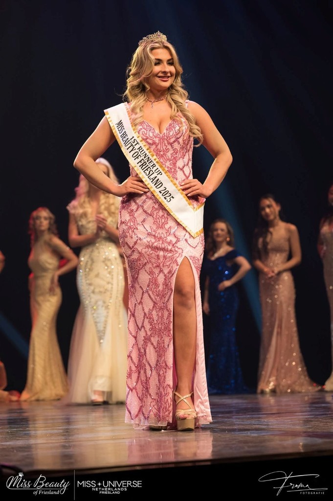 Tussen de stralende finalisten was één naam niet te missen: Lisa Salverda uit Harlingen. En met recht! De 25-jarige Lisa ging namelijk niet met lege handen naar huis: ze werd gekroond tot First Runner-Up én nam ook nog eens de titels Miss Media Friesland 2025 en Miss Charity Friesland 2025 mee naar Harlingen.