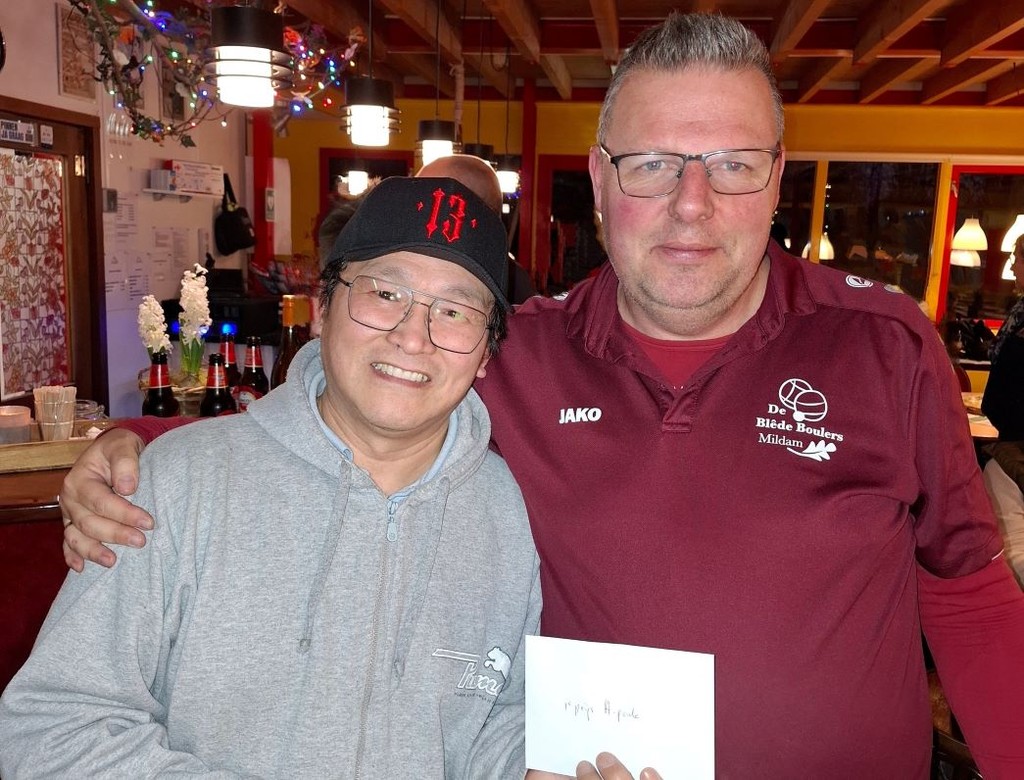 In de A poule, waar de uiteindelijke winnaars uit kwamen, stonden de heren Roelof van der Ploeg en Aede Dijkstra (JBV Boulegoed) tegenover het gelegenheidsteam van Loc van Le (Le Biberon) met Gerjan de Roos (Blède Boulers Mildam) De strijd ging punt voor punt. Er was flink veel publiek komen kijken, maar totale stilte in de wedstrijdhal. De uitslag werd uiteindelijk 13 – 8 en de winnaars van het Stienenman toernooi 2025 waren de Loc van Le en Gerjan de Roos.