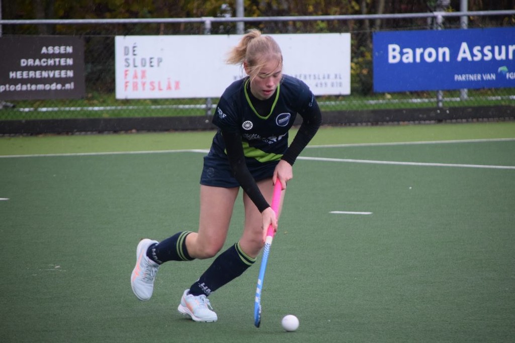 Er waren zelfs wat aanpassingen gedaan in de opstelling om te kijken hoe het zou lopen en dat ging verbazingwekkend goed. De meiden hebben heel het eerste kwart de wedstrijd gedomineerd. Waar normaal de tegenstander sneller, feller en beter was, waren dat de meiden zelf! Na vele doelpogingen beloonden de meiden zich pas later in het tweede kwart met een 0-1 voorsprong! Alleen de pret was van korte duur, want zo lag ook ineens de 1-1 in het goal. De meiden hadden de touwtjes niet meer in handen en speelden lastig. Het werd pompen naar voren in plaats van goed opbouwen. Zo tekenden de Graspiepers zelfs voor de 2-1. Het ging toch niet gebeuren dat de meiden met verlies het veld afliepen? Na een scrimmage voor het goal stond eindelijk de 2-2 op het bord. Welverdiend. Na een taai en lang 4e kwart begonnen de meiden de laatste paar minuten weer te hockeyen, zoals in het eerste kwart. Te laat. Het eindsignaal klonk en de meiden liepen met maar 1 punt het veld af. Niet wat ze wilde halen en dit was voor hen alweer de laatste wedstrijd voor de winterstop. De meiden beginnen 8 december aan de zaalcompetitie en zijn vastberaden na de winterstop feller terug te komen op het veld. De Harlinger dames willen wedstrijdsponsor Houthandel Posthumus erg bedanken en ook hun doelpuntsponsoren!