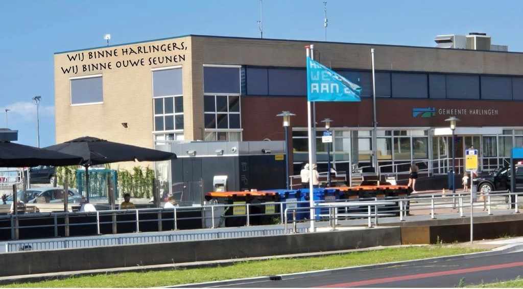 Maar waarom dan op een prominente plaats, op een overigens bijzonder lelijk gebouw, een tekst in het Fries? Vindt de gemeente het bewaren van het Harlinges dan toch niet zo belangrijk? Er zijn immers genoeg organisaties die zich al voor het Fries inzetten.