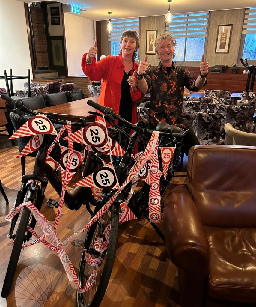 Ter gelegenheid van dit dubbele jubileum werd Peter op een bijzondere manier in het zonnetje gezet. Als blijk van waardering kregen hij en zijn vrouw Corinne een elektrische fiets, zodat zij samen kunnen genieten van mooie fietstochten. "Samen uut, samen thuus!" zegt Jacob Koopmans.