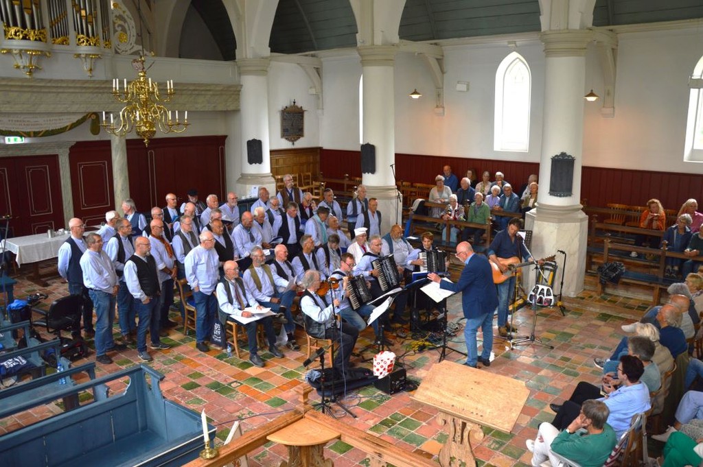 Na de pauze een blokje van 15 minuten van de Skúmkoppen. Het koor heeft goede solisten in zijn gelederen. Zo zong Wietse Mollema ‘De Friezen Sjonge’, Dennis Henkes ‘Isle of hope’, Klaas Bakker ‘Fries om Utens’ en Cees Amels die tot verrassing van zijn dorpsgenoten ‘Roll Alabama’ op uitstekende wijze naar voren bracht.
