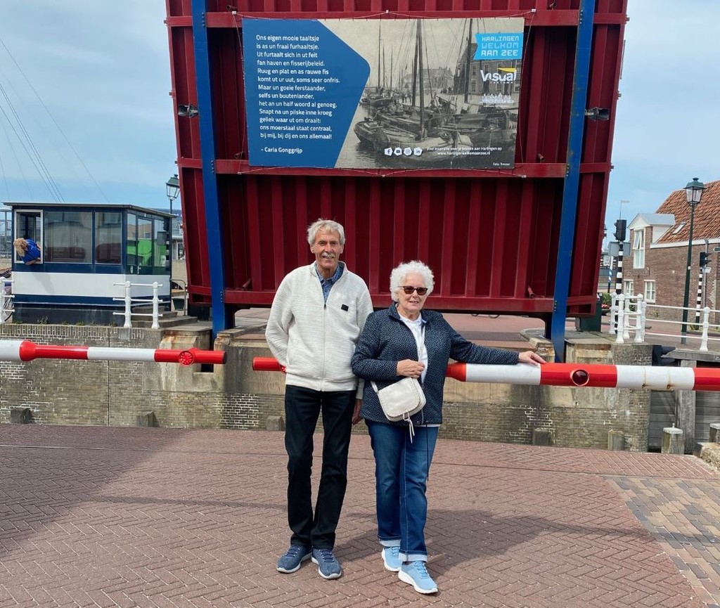 De winnende teksten zijn gemaakt door Carla Gonggrijp en Coby Helmstrijd. In combinatie met mooie oude foto’s hangen er dus nu weer fraaie banners die wachtende Harlingers en toeristen, voor een open brug, zullen gaan vermaken deze zomer.