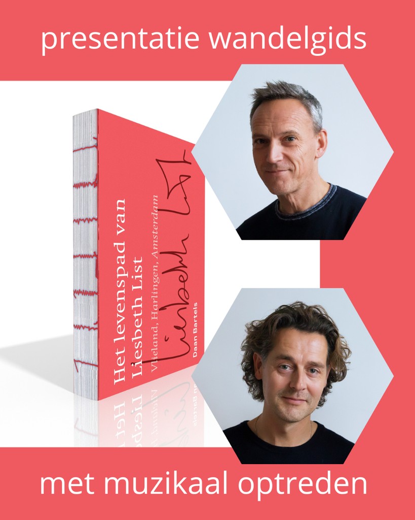 Schrijver Daan Bartels presenteert vrijdagmiddag 23 januari zijn wandelgids Het Levenspad van Liesbeth List in Café Bruintje op Vlieland. Tijdens de bijeenkomst verzorgt zanger Remco van de Weerdt de muzikale omlijsting met liederen van Liesbeth List. Het eerste Vlielandse exemplaar van de gids wordt aangeboden aan burgemeester Michiel Schrier.