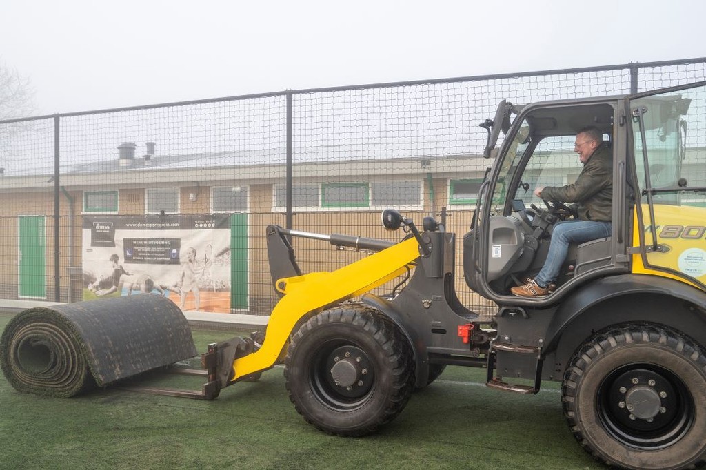 De toplaag was afgekeurd en dringend aan vervanging toe. Wethouder Hendrik Sijtsma en Mike Ripassa (Domo Sports Grass) gaven samen met voorzitter Sander Alberda en bestuursleden accommodatiezaken Bouke Bakker en Geertjan de Groot het officiële startsein. Als het weer meezit, is het veld rond 27 maart weer klaar voor gebruik.