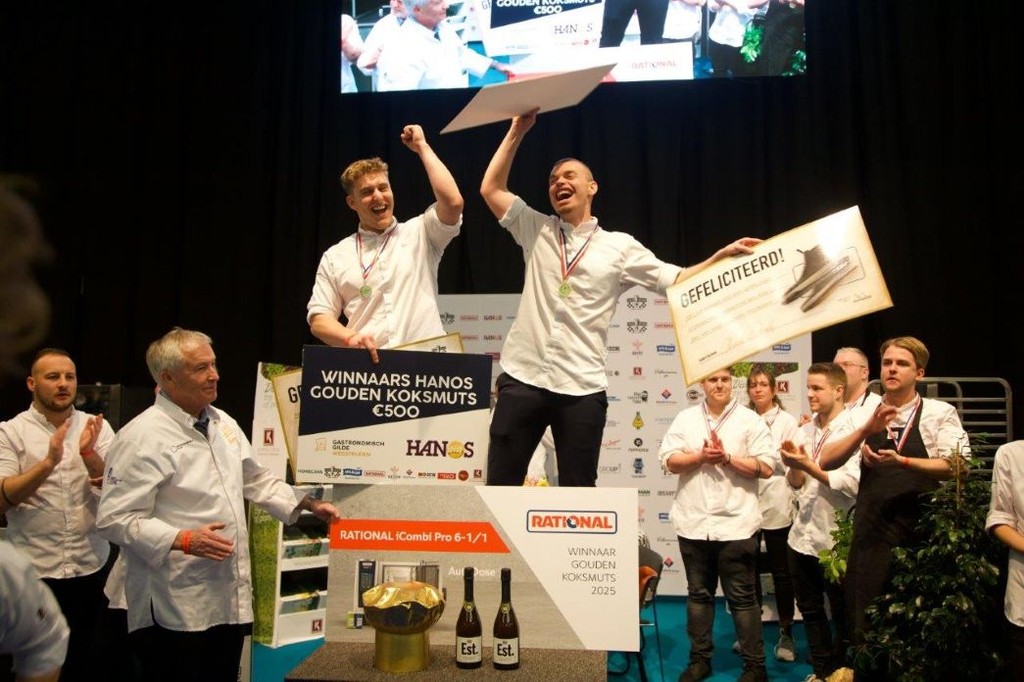 Als winnaars kregen Ruben en Pascal niet alleen de HANOS Gouden Koksmuts, maar ook een prachtige stoomoven van Rational, een Big Green Egg Large met accessoires van Big Green Egg, een cheque voor een masterclass kalfsvlees van de VanDrie Group, Nederlandse vanille van Koppert Cress, een messenset van Dick en de 'Best of Dobla' van Dobla. Daarnaast werd het Gastronomisch Gilde hen ook beloond met een cheque van €500.