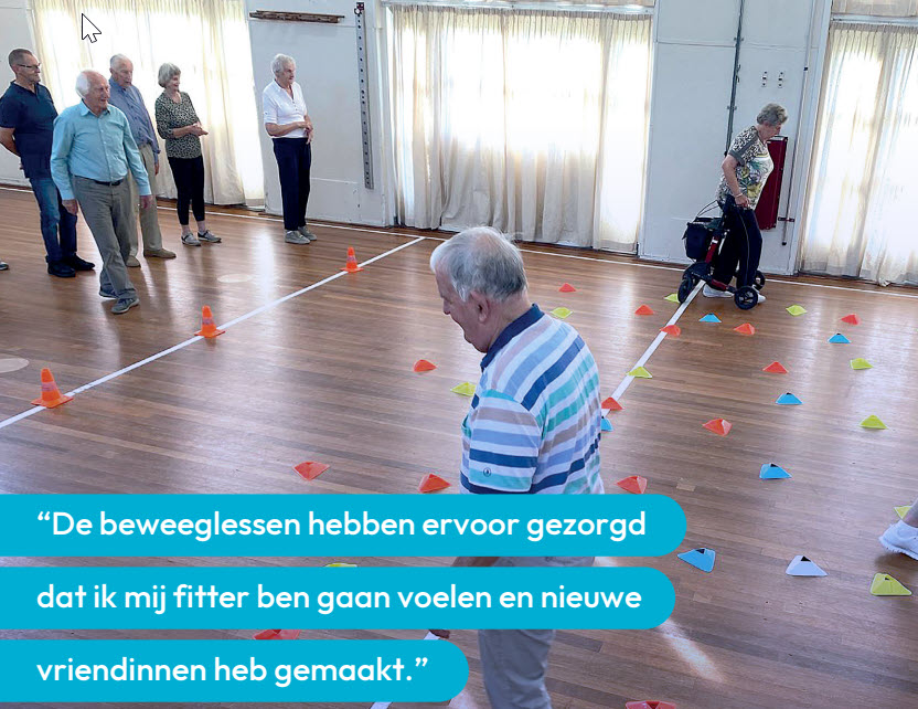 Dit zijn wekelijkse beweeglessen, speciaal voor 65-plussers. U doet eenvoudige oefeningen op maat, onder begeleiding van een beweegcoach. Zo blijft u sterker, krijgt u meer zelfvertrouwen én ontmoet u nieuwe mensen.
