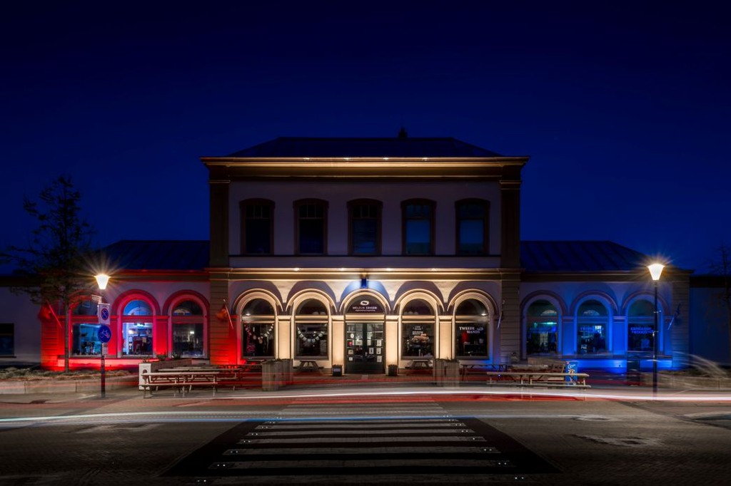 Het stationsgebouw vormt vanaf 17 april een krachtig symbool van nationale trots. Met de gevel in rood-wit-blauw wordt het station een stralend baken van vrijheid én een warm welkom voor iedereen die Harlingen binnenkomt.