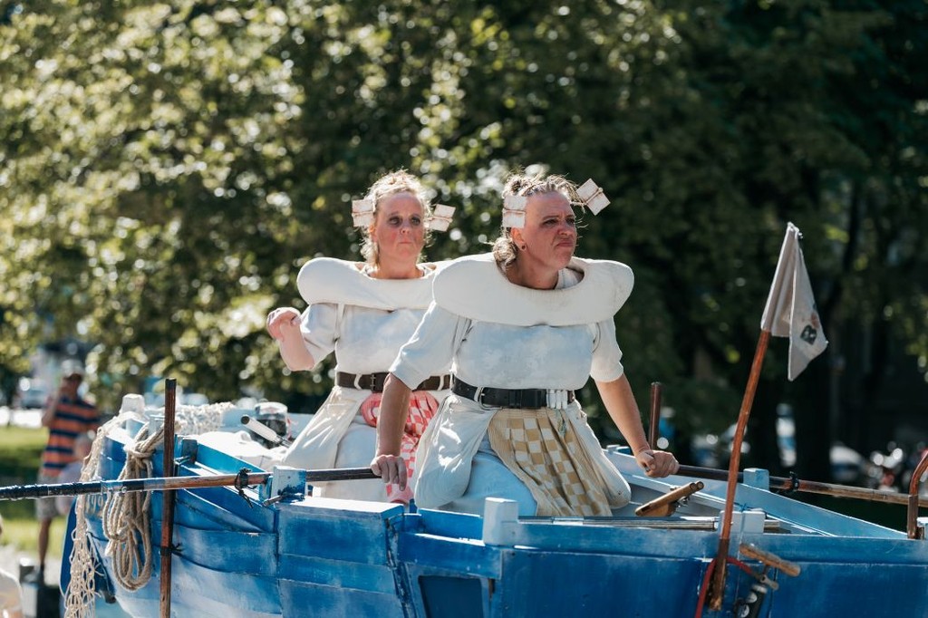 Greet en Griet varen door een zee van verbeelding. Deze theatrale viswijven brengen een beeldend spektakel vol mimiek, humor en maritieme slapstick. -