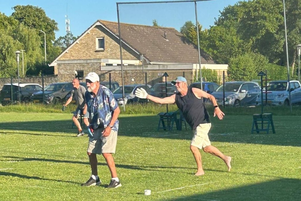 De protters donderden as ut ware van ut dak of. En dat kon je oek merke want ur waren maar 4 partuurkes van 2 man. In ut begin vulden je vier perken nou dus niet. Of hewwe die toen alleen even traint voor ut Lanenkaatsen, nou we wachtte of.