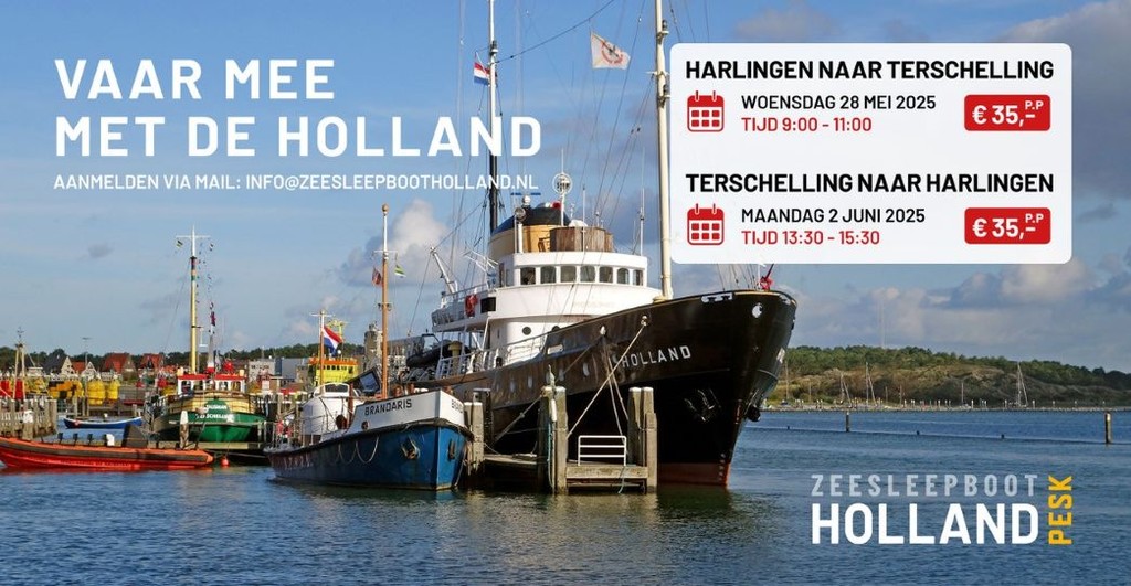 - Aanmelden kan via: info@zeesleepbootholland.nl