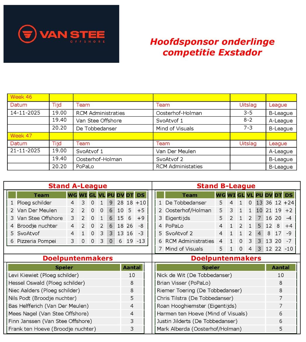 - 19.00 uur A-League: SvoAtvof 1– Van Der Meulen