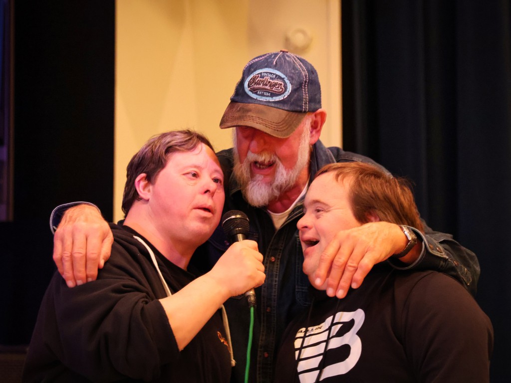 Daarna was ur een pauze en wudden de mesen verrast met koffie, fris, kees en droge wust. Drekt na de pauze kwam ur een geweldig optreden van Marten Hiemstra (blind), een lid van de SOOS. Hij begon met 2 prachtige Harlinger nummers, Mienekes en Ut Singelsje. Dat was al prachtig maar met ut lied, hij zit ur nog wel maar hij doet ut niet meer, lag de hele zaal op e knibbels van ut lachen. Daarna waren van Dijk en Veltman weer an e beurt en zongen vooral ut lied, “run to me”, heel mooi.