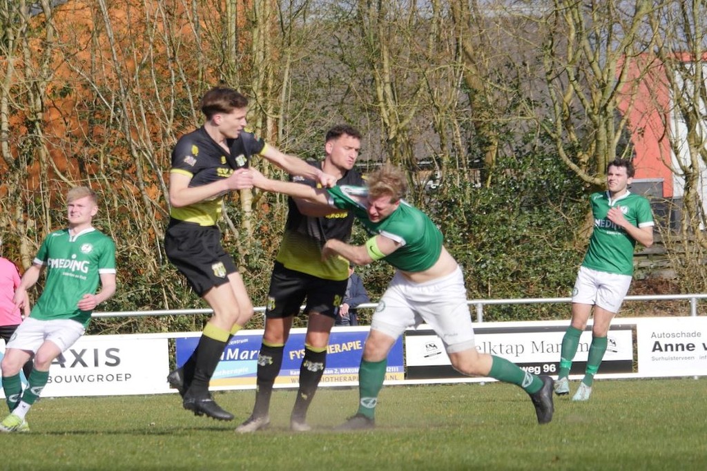 Na de thee ( wat zat daar eigenlijk in?) een furieus startend Marum, dat na vijf minuten het duel een heel ander karakter gaf. Aan de 2 – 1 gingen al wat kansjes vooraf, maar Ralph Oosterhof zorgde over rechts dat De Lange glijdend binnen kon schieten. Zeerobben probeerde wel de bakens te verzetten, echter zonder gevaarlijk te worden. Een penalty, scheidsrechter Robert de Wit stond op 2 meter afstand dus zijn oordeel was zeker gefundeerd, moest Zeerobben weer op gelijke hoogte brengen. Thomas Dijkstra maakte beheerst de 2 – 2. In plaats van de rust weer binnen de gelederen te behouden, gingen de Harlingers mee in de hectiek van het spel van de Marummers. Het vechtvoetbal was deze middag wel besteed aan de gastheren. Kansen kreeg Zeerobben nauwelijks nog, terwijl Marum met opportunistisch spel met name over de flanken gevaarlijk bleef en ook kansen kreeg. Theo Nota voorkwam een voortijdig achterstand door een zeker schijnend doelpunt met een gestrekt been buiten de palen te houden. De voorsprong kwam er toch. Een misverstand in de defensie van Zeerobben plaatste Jetse Tuithof vrij voor Nota. Met overzicht tikte hij de bal breed op de geheel vrijstaande Ralph Oosterhof en dat betekende 3 – 2. Zeerobben probeerde nog wel met schoten van Durk Ennema en Wesley Tankink, maar binnen de zestien was een woud van benen en dus geen doorkomen aan. De referee De Wit, die de vechtwedstrijd met kort houden tot een goed einde wist te brengen, hield het na een laatste poging van de gasten voor gezien.