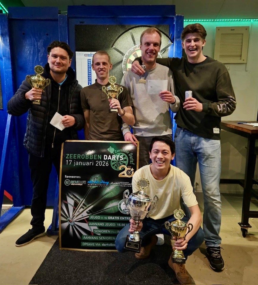 Afgelopen zaterdag was het weer tijd voor het jaarlijkse darttoernooi op de Robbenplaat. Vele leden hebben s’ ochtends en s’ middags hun eerste wedstrijd na de winsterstop gespeeld. Maar na het voetbal kon eenieder zich opmaken voor Zeerobben Darts in de kantine. Met bijna honderd deelnemers was deze 20e editie, een jubileum, weer een groot succes!