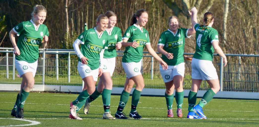 Blijdschap bij de dames als Danique Slot op aangeven van Rinske Schaap de 1-0 heeft gescoord.